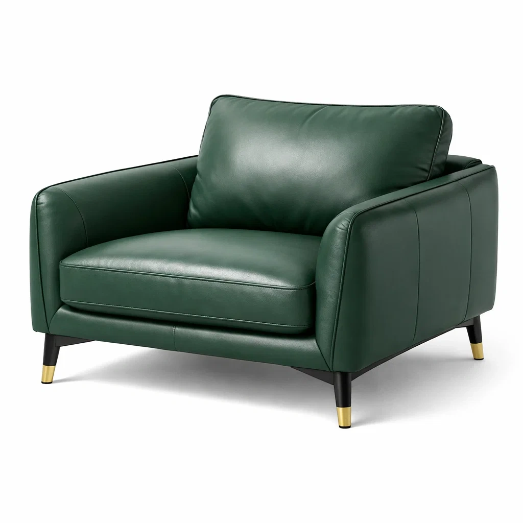 Fauteuil en cuir vert avec pieds en métal
