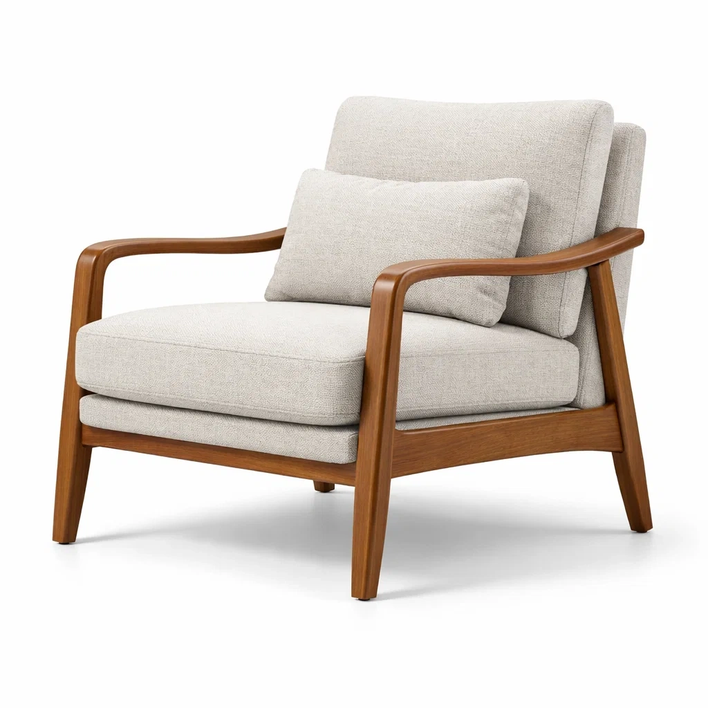 Fauteuil en bois de hêtre avec revêtement en tissu beige