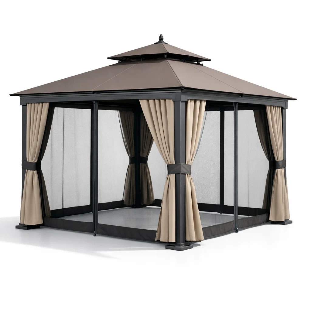 Pavillon de jardin en aluminium avec toile en polyester marron