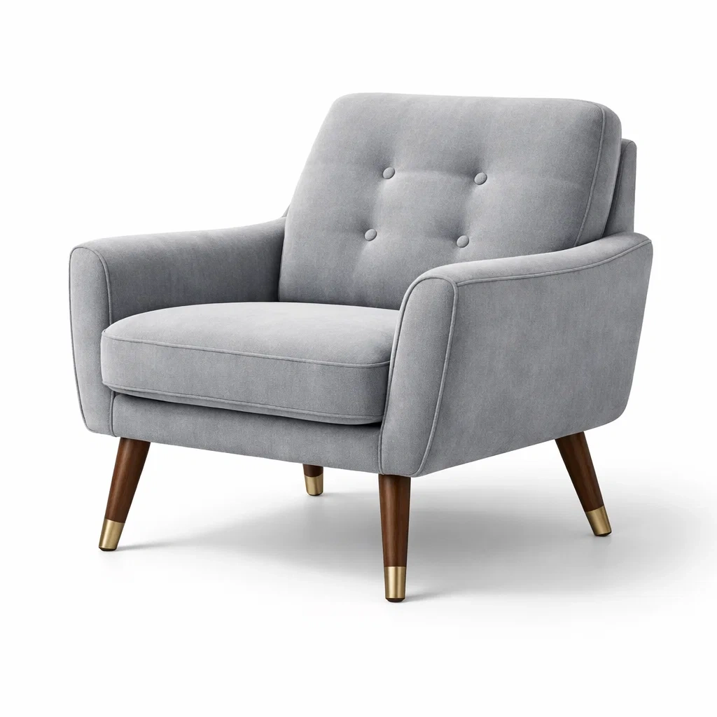 Matériaux: Tissu en polyester, pieds en bois massif avec embouts métalliques.